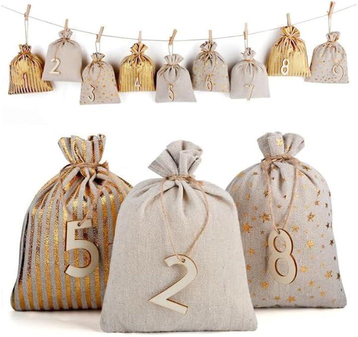 温かみのある素材感で、どんなシーンにもなじむアドベントカレンダー袋セットです。