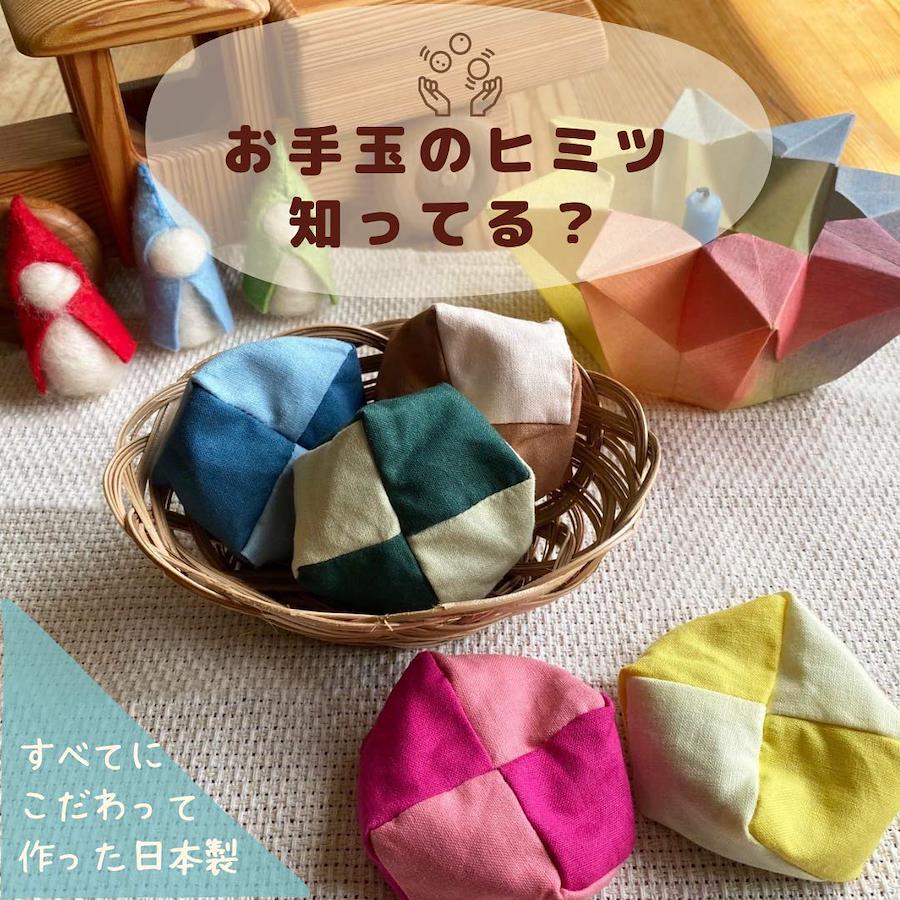コットン素材の5色の布に小豆を詰めたお手玉を作りました♪ 子供達の健やかな育ちのために、『五感をたっぷり使って』、『無心になって遊んで欲しい』という思いを込めて作ったお手玉です。 お手玉を積極的に取り入れている教育機関、リハビリ施設や高齢者向け施設が多くある事をご存知ですか? 様々な教育機関でもお手玉は古くから取り入れられていますが、特にドイツ発祥のシュタイナー教育では、お手玉を積極的に取り入れた学習が実施されています。 一見、とてもアナログで、どのような効果があるのか分りにくいお手玉遊びですが、実は、お手玉をした子とそうでない子とでは、数学の学力(数列)に違いがあった”とも言われており、『空間認識能力』が必要とされるお手玉遊びは子供達の脳の発達にとても有効であるようです。 既に、お手玉が、脳の発達・活動にどれだけの効果があるかという事は、様々な国の医学研究者の論文でも発表されています。その効果とは、『脳の発達や活性化』だけではなく、『うつ病の改善』や『脳疾患のリハビリ』、その他、『痴呆の予防』と多岐に渡ります。 また、最近のうつ病の発祥の低年齢化はとても深刻ですので、ぜひ子供達の日常遊びにお手玉も使って下さい。 ☆ レカン京都店のお手玉は、 肌にやさしいコットン100パーセントのシーチング生地。 本物に触れて欲しいという思いで、中にはペレットではなく小豆を入れました。(虫の発生の内容に徹底して管理しております) ☆遊び方☆ 触れるたびに小豆の奏でる耳にやさしい音かします。子供達の遊び方は無限大! お手玉を色々なものに見立てたら、イメージ遊びも膨らむように素材は無地の基本の5色です。 座布団型のお手玉には、布に遊びがあるので、つまんだり、平らにして頭にのせたりと変幻自在で遊び方も広がります! 頭にのせて鬼ごっこしたり、右手左手を交互に使うとバランス感覚が養われます! ※サイズ形は「日本お手玉の会」国際公認規格の、座布団型お手玉1個あたり40gの重さです。 座布団型お手玉5色入り 生地:コットン100% 中身:あずき40g/1個 【日本お手玉の会】国際公認規格サイズに沿って作っております。 ※一つ一つ手作り品のため、多少の誤差が生じる場合もあります。 ①日本製(京都)のお手玉、無地の基本5色、手のひらにしっくり馴染むむざぶとん型で、イメージ膨らむ基本五色とざぶとん型で使い方は遊びの幅が広がります。 ②材質