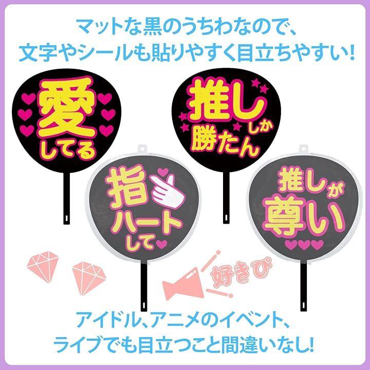 マットな黒のうちわなので、文字やシールも貼りやすく目立ちやすい。アイドル、アニメのイベント、ライブでも目立つこと間違いなし。