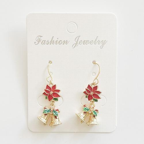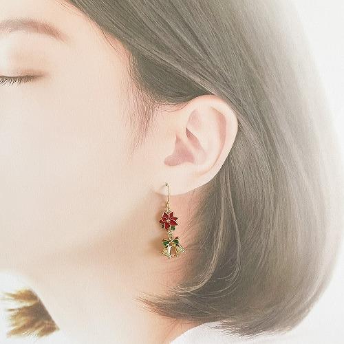 赤いポインセチアのコネクターチャームに、ゴールド・グリーン・レッドの配色が華やかでキュートなベルをつないで、クリスマス感たっぷりのテイストです。