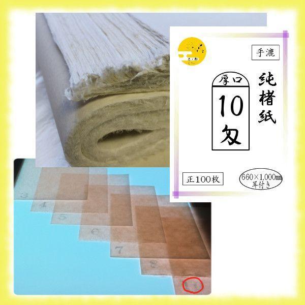 手漉きこうぞ紙・韓国楮紙 100枚包(1)規格:厚口 10匁、手漉き(2)サイズ:660×1,000mm(2.2×3.3尺;二三判幅広)(3)入数:100枚(4)用途:版画用紙(木版画)、奉書紙代用、水墨画用紙、美術紙、工芸用紙等(5)仕様:未晒・生漉・耳付・韓国楮100(6)生産地:韓国(7)1枚当たり:687.75円