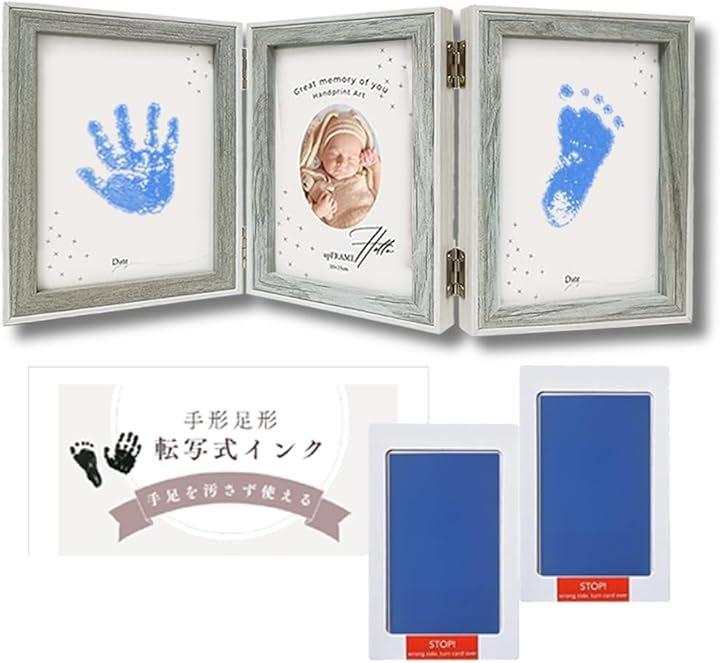 かわいい。手形足形スタンプ とフォトフレームのセット: 赤ちゃんの手形や足形を記念に残せます。