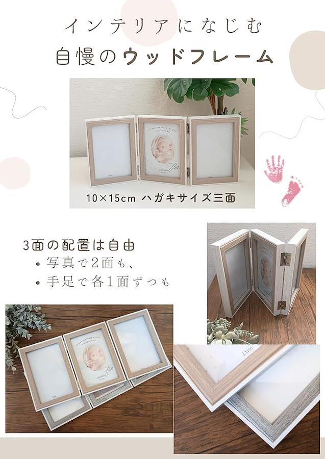 かわいい。手形足形スタンプ とウッドフレームのセット: 赤ちゃんの手形や足形を記念に残せるおしゃれな 写真立て です。