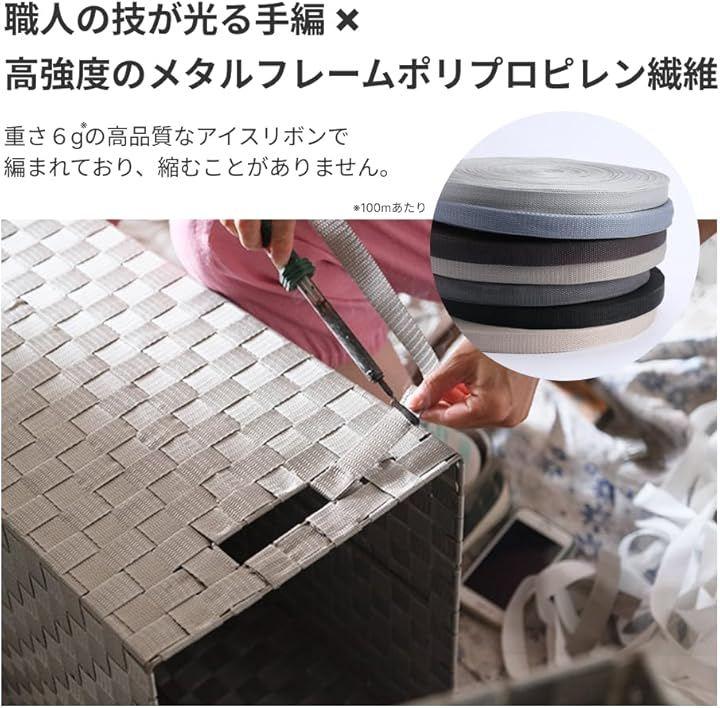 「手編みボックス」収納バスケットは、職人の技が光る手編みと高強度のメタルフレームポリプロピレン繊維を組み合わせて作られています。