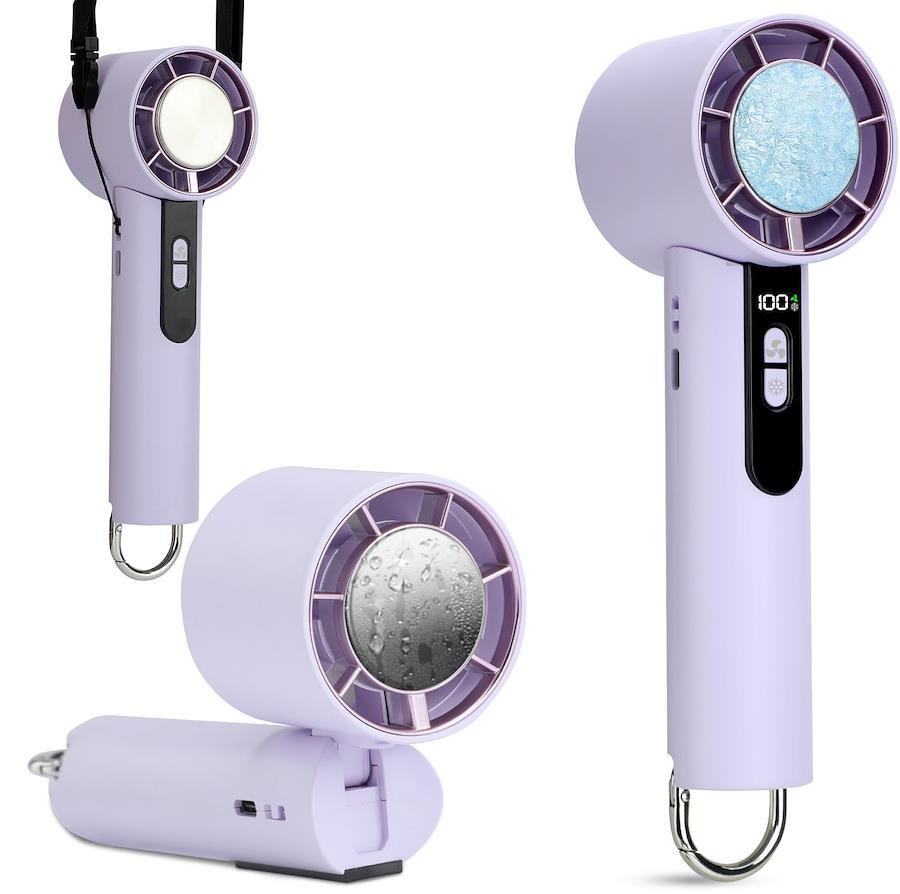ハンディファン【2025年モデル・瞬間冷却】携帯扇風機 冷却プレート 超高速大風量 5200mAh大容量 折り畳み 手持ち扇風機 小型 100段階風力調節 接触冷感 ミニファン 超軽量 静音 ハンディ扇風機 USB充電式 暑さ対策 4in1 手持ち 卓上 首掛け クーラー機能 ストラップ付き カラビナ付き (パープル)