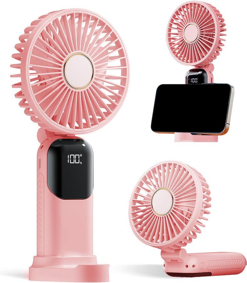 ハンディファン 携帯扇風機 手持ち扇風機 大風量 小型 5000mAh 首かけ 静音 残量表示 小型 5段階風量調節 24時間連続稼働 usb充電式 DCモーター スタンド ストラップ付き 母の日 誕生日 ギフト プレゼント 熱中症対策 通勤 通学 旅行 自宅 お祭り 花火大会 オフィス(ピンク)