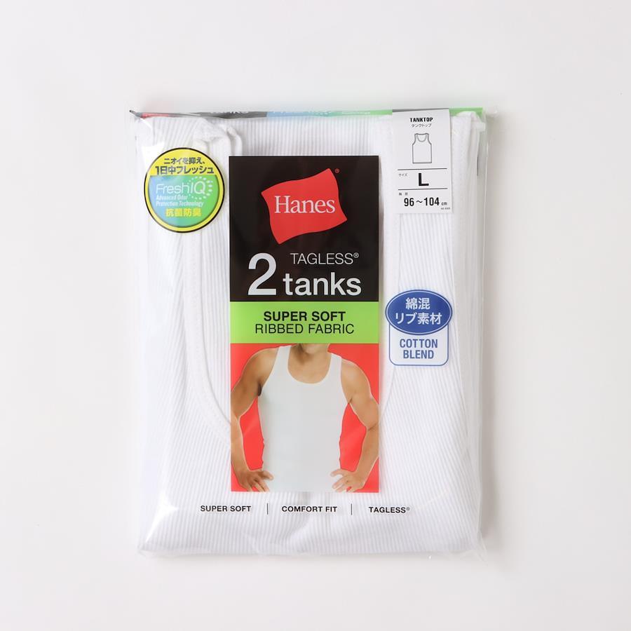 【DETAIL】・しなやかでソフトな肌触りと、しっかりとした着心地が特長のHANES(ヘインズ)を代表するベーシックアンダーウェアTシャツ、2P( 2枚入りパック)タンクトップです。・綿混の柔らかくサラリとした肌触りのリブ素材は、伸縮性に優れているので身体にフィットして動きやすく、毎日着る肌着として最適。・首元にネームデザインをプリントするTAGLESS(タグレス)仕様で襟ネームの肌当たりを解消。・ニオイの発生を抑制する「FRESH IQ(フレッシュ アイキュー)」加工により1日中快適です。・ネックとアームホール部分は洗濯後も型くずれしにくいバインダー仕様。・「毎日着る身近なアイテムだからこそ、高品質でリーズナブルなものを」という要望に応えるヘインズの新定番アイテムです。