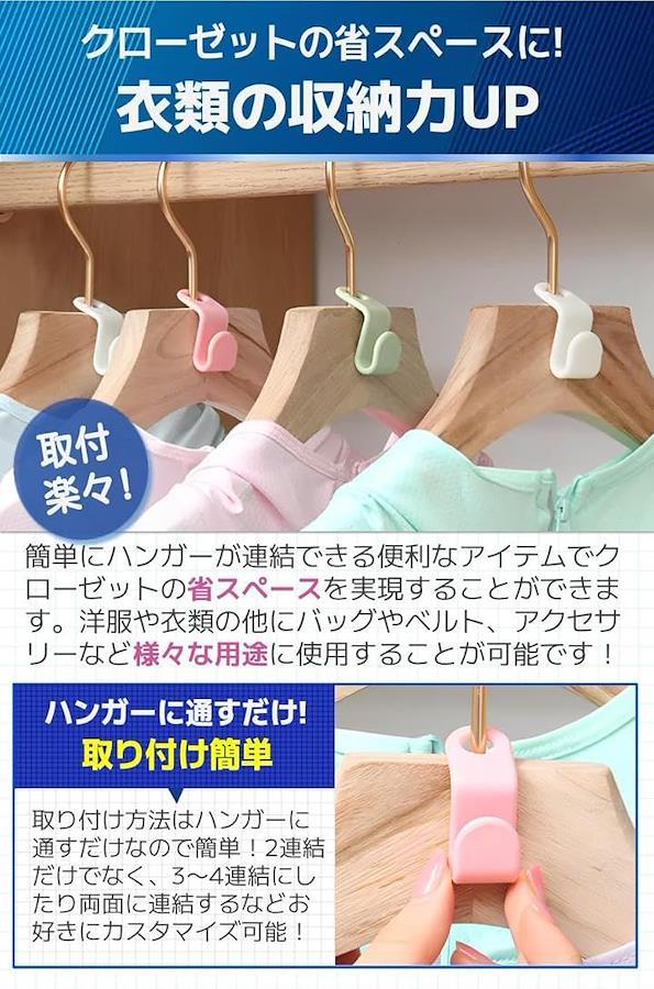 「衣類の収納力UP」簡単にハンガーが連結できる便利なアイテムでクローゼットの省スペースを実現することができます。