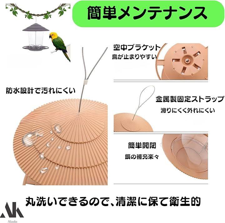 「エサの補充が楽々」透明な容器でエサの残量がすぐにわかり、小鳥たちに常に新鮮なエサを与えられます。