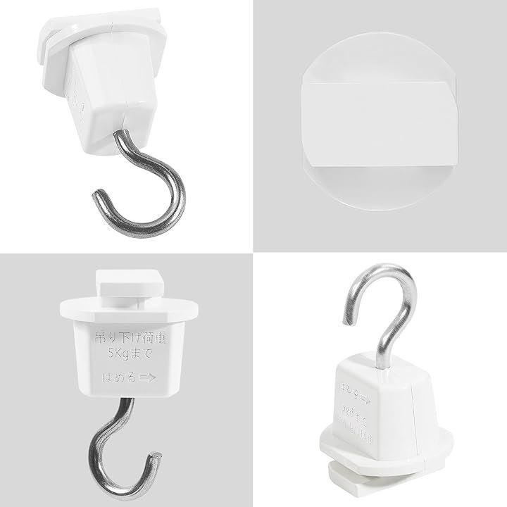 1、「仕様」商品名: ダクトレール用吊りフック 色:ホワイト、ブラック 重量:12g 材質: ABS、軟鋼線材 吊り下げ荷重:5kgまで 奥行:28mm/幅:24mm/高さ:47mm