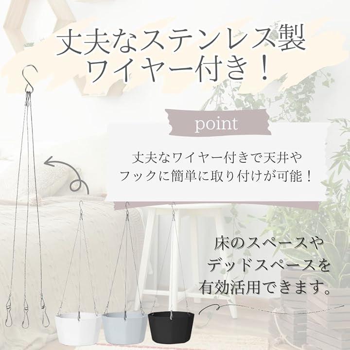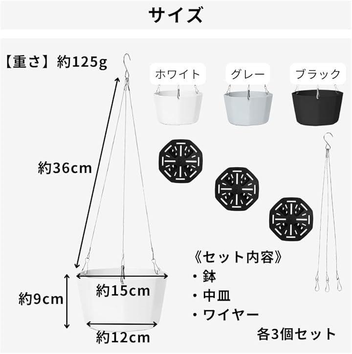《サイズ》鉢部分:上部直径 約15cm・下部直径 約12cm・高さ 約9cm / ワイヤー:約36cm / 重さ:約125g《セット内容》鉢・中皿・ワイヤー 各2個セット / 3個セット《カラー》ホワイト・グレー / ホワイト・グレー・ブラック