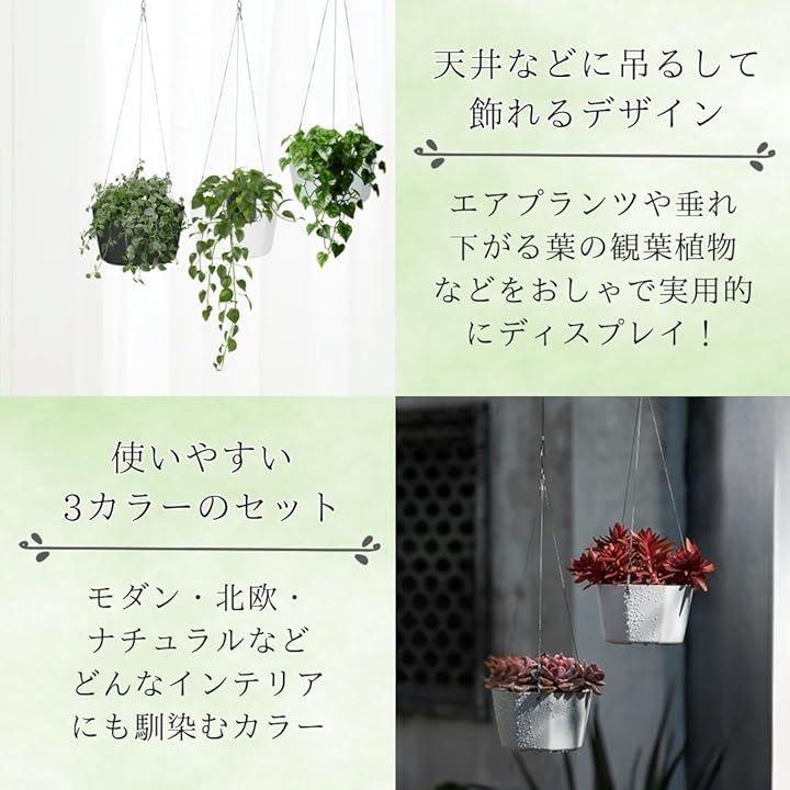 このハンギングプランターは、天井などに吊るして飾れるデザインで、垂れ下がる葉の観葉植物やエアプランツなどをおしゃで実用的にディスプレイできます。