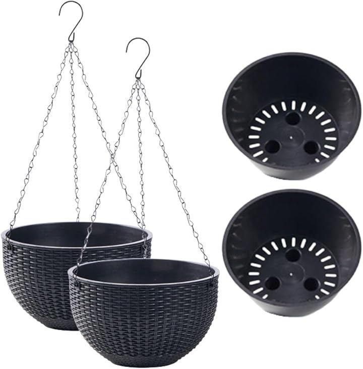 「二重構造で根腐れを防ぐ安心設計」 外側プランターと脚付き内側プランターによる二重構造を採用したハンギングプランター2個セットです。