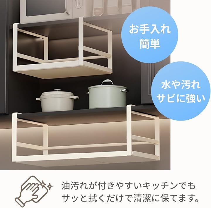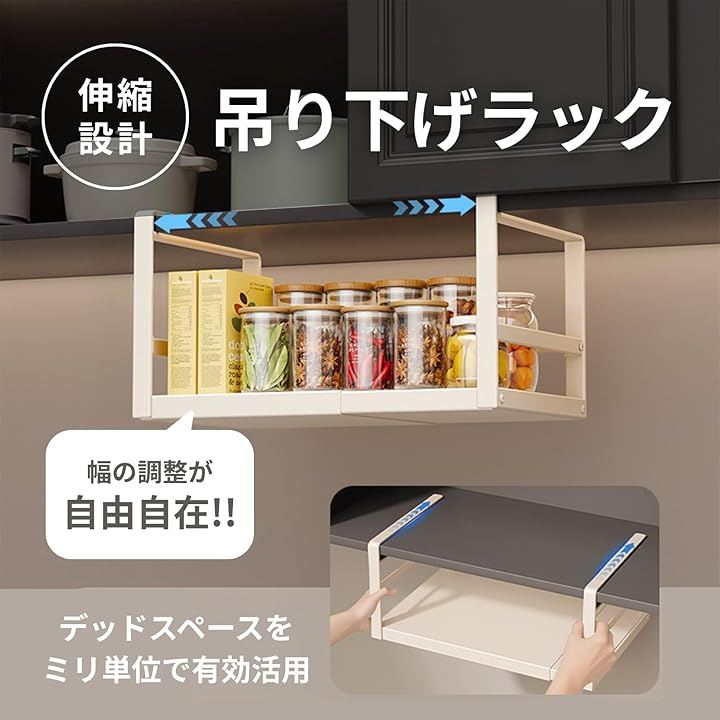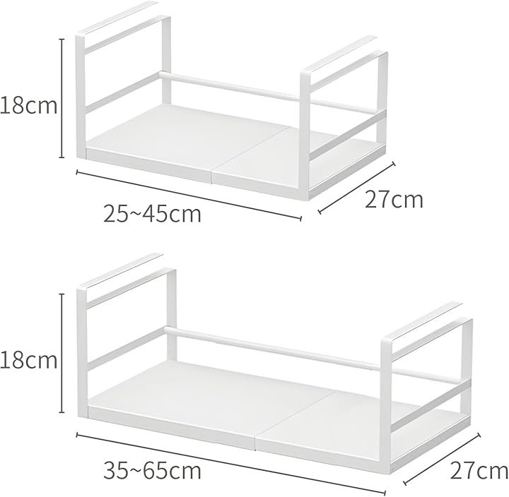 「25~45cm」と「35~65cm」の2サイズ展開で、キッチンの隙間やシンク上のデッドスペースをミリ単位で有効活用できます。
