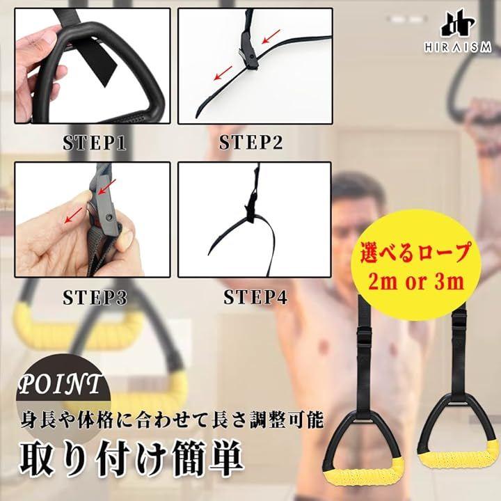 長さ調整可能なロープは2mと3mを用意しており、あなたの身長や体格に合わせて選ぶことができます。