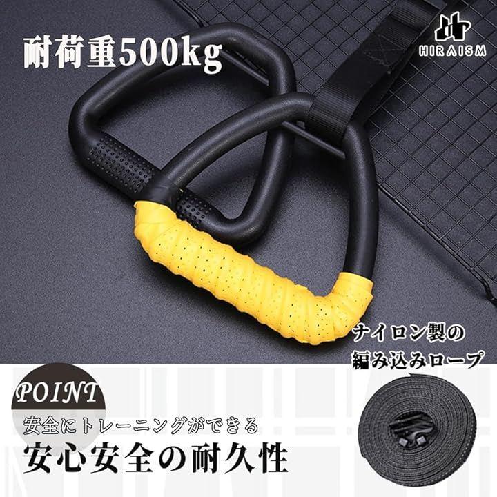 「安心安全の高耐久性」耐荷重500kgを誇るナイロン製の編み込みロープと、鋼鉄製のリング本体により、様々なトレーニングに耐えうる高い耐久性を実現しております。