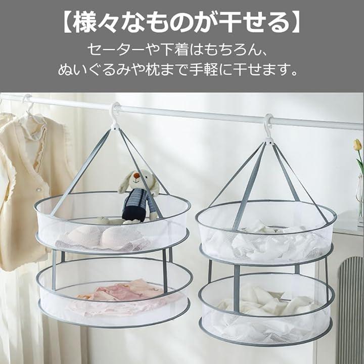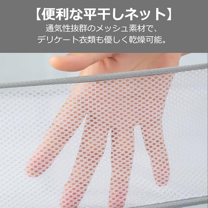 「便利な平干しネット」通気性抜群のメッシュ素材で、デリケート衣類も優しく乾燥可能。