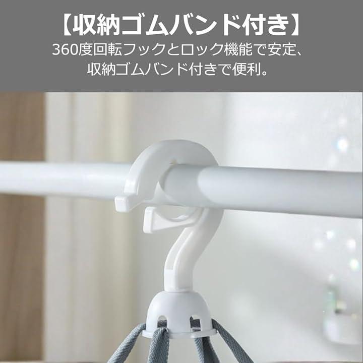 「収納ゴムバンド付き」360度回転フックとロック機能で安定、収納ゴムバンド付きで便利。