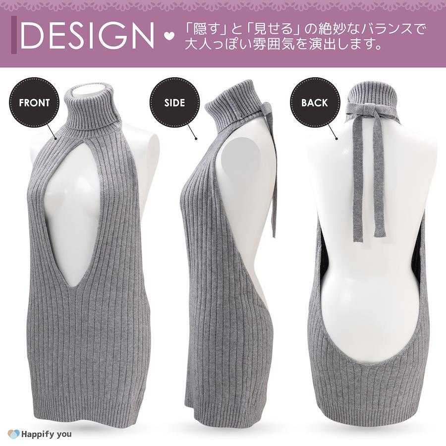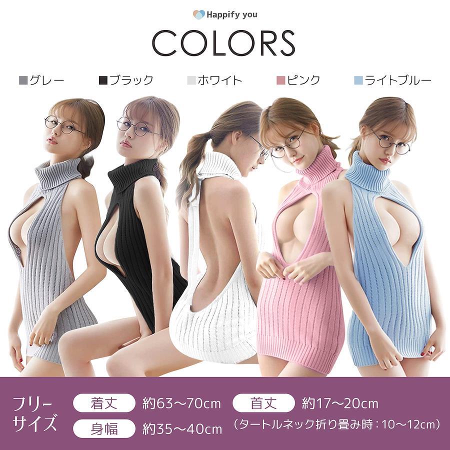 での取り扱い開始日?:?2023/4/10ASIN?:?B0C1ZWXZF8部門?:?レディース売れ筋ランキング:ドラッグストア-32,976位(ドラッグストアの売れ筋ランキングを見る)アダルト用コスチューム-145位カスタマーレビュー:4.05つ星のうち4.0111個の評価vardpAcrHasRegisteredArcLinkClickAction;P.when('A','ready').execute(function(A){if(dpAcrHasRegisteredArcLinkClickAction!==true){dpAcrHasRegisteredArcLinkClickAction=true;A.declarative('acrLink-click-metrics','click',{"allowLinkDefault":true},function(event){if(window.ue){ue.count("acrLinkClickCount",(ue.count("acrLinkClickCount")||0)+1);}});}});P.when('A','cf').execute(function(A){A.declarative('acrStarsLink-click-metrics','click',{"allowLinkDefault":true},function(event){if(window.ue){ue.count("acrStarsLinkWithPopoverClickCount",(ue.count("acrStarsLinkWithPopoverClickCount")||0)+1);}});});登録情報取り扱い案内 洗濯機洗い【バージョンアップした童貞を殺すセーター】一時期「童貞を殺すセーター」として話題になったコスチュームが、バージョンアップして再登場。胸元と背中が大きく開いたセクシーな衣装は、大切な人との大切なひと時を彩ること間違いなし。【選べる5つのカラー】カラーはグレー、ホワイト、ブラック、ピンク、ライトブルーの5色をご用意。お好みの色味をお選びいただけます。フリーサイズなので、体型に関わらずゆったりとした着心地でストレスフリー。【こだわりの高品質】類似品に比べて、伸びの良い生地で着心地は抜群。滑らかな綿素材で肌触りも最高です。繋ぎ目や首元の縫製もしっかりしているため、すぐに破れたりほつれたりしてしまうことなく、長くご愛用いただけます。【ご利用シーン】大切な人との大切なひと時に着用することで、特別な時間をさらに盛り上げます。また、コスプレやイベントの衣装としてもご利用いただけます。【商品仕様】○サイズ:フリーサイズ《着丈/約63~70cm、身幅/約35~40cm、首丈/約17~20cm(タートルネック折り畳み時:10~12cm)》 ○素材:綿 ○カラー:グレー/ホワイト/ブラック/ピンク/ライトブルー ○ブランド:Happify you(#lf)(#lf)(#lf)商品購入前に、ストア紹介ページをご確認ください。