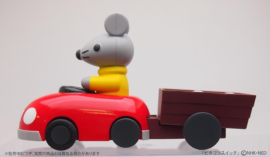 『ピタゴラスイッチ』より大人気キャラクター、気の利くネズミの「スー」がプルバックカーになり登場。荷台に荷物をのせると番組同様、スーが荷物を運んでくれる。・遊び方スーをプルバックさせて適切な重さ(15g)の荷物をのせると走り出す。(荷物をのせないとプルバックしても進まない)1、付属のたまをのせて走らせてみよう!・・・たまは2個ついているよ。なぜ1個ではなく2個なのかな?2、いろんなものをのせて走るか試してみよう!・・・ケシゴム、コイン、乾電池など、身近にあるもので何をのせたら走るのか考えてみよう。3、動く仕組みを考えてみよう!・・・荷物をのせるとぜんまいのストッパーがはずれて走るよ。どんな構造になっているのかな?4、ピタゴラ装置の仕掛けとして使ってみよう!・・・「のせると走り出す」特徴を活用すれば、おもしろいピタゴラ装置がつくれるよ。【セット内容】本体×1、たま×2、「動く仕組み」がわかるリーフレット×1(.co.jpより) 「ピタゴラスイッチ」(C)NHK・NED