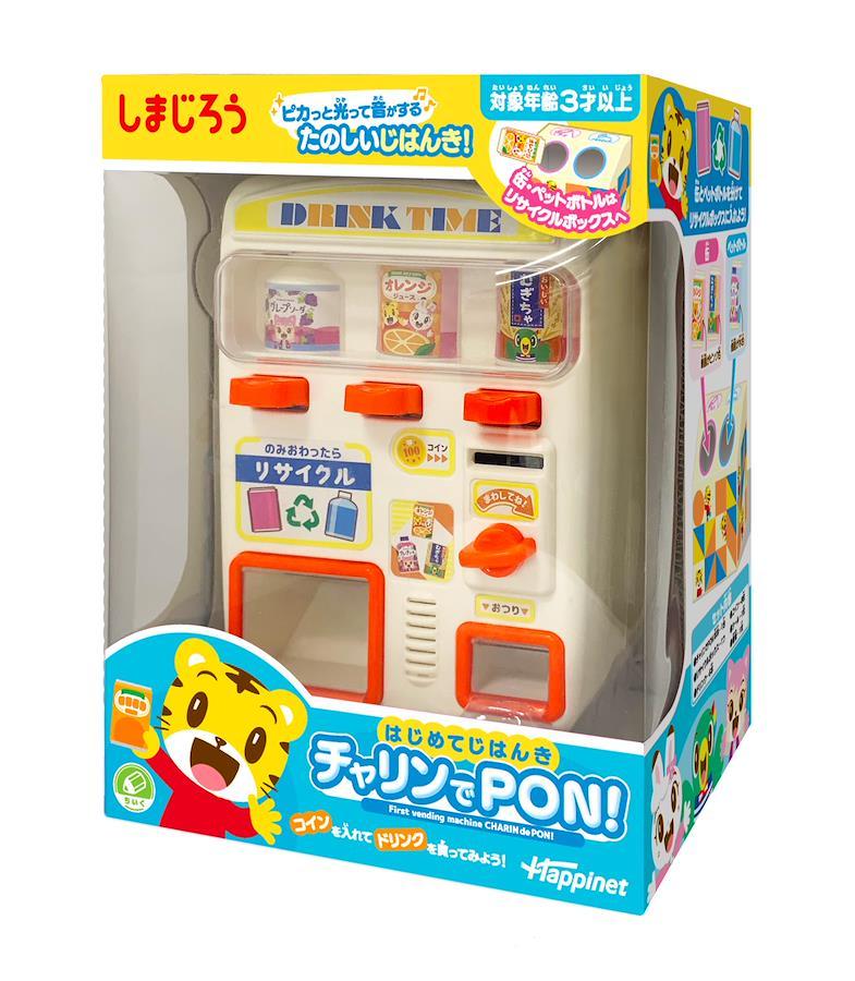 コインをいれて、ドリンクが買える”じはんき体験”ができるアイテムです。リサイクルボックスつきなので、缶とペットボトルの仕分けを遊びながら学べます。何度も遊びたくなるようドリンクを買うたびに曲が流れるよう工夫しています。■セット内容:本体、コイン8枚、ドリンク6本、リサイクルボックス、シール、看板■対象年齢:3歳以上本体サイズ:W135×H205×D100mm使用電池:単3電池×2(別売り)※「しまじろう」は(株)ベネッセコーポレーションの登録商標です。