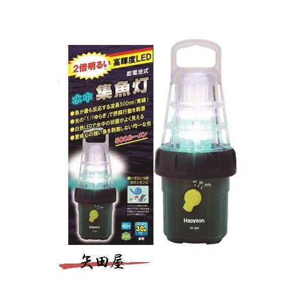 現行品の特徴に加えチップLEDの採用で倍明るい(500ルーメン)。※現行品YF-500比警戒心の強い魚を刺激しない均一な光。現行品からの特徴魚が最も反応する波長500nm(青緑)。光の「1/fゆらぎ」で摂餌行動を刺激。【使用電源】アルカリ乾電池単1形 4本(別売)【電池寿命】全点灯連続 約 8時間(20℃時) オートモード連続約32時間【最高光束】500lm【 質量 】約1.6kg(アルカリ乾電池含む)【外形寸法】約 直径123mm×高さ300mm【付属品】 300mロープ・ロープ巻き・ポリ袋(乳白色)
