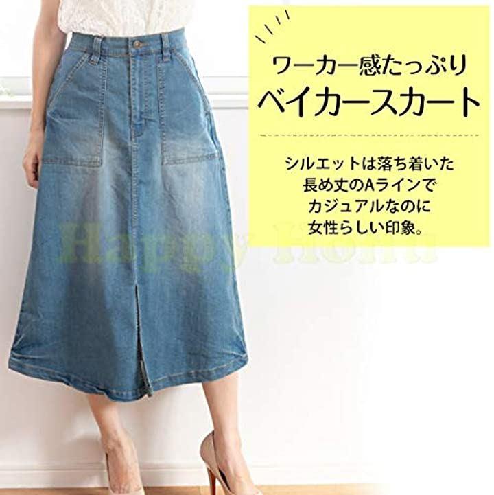 アウトポケットが特徴的なベイカースカートで大きなポケットが可愛くポイントに。