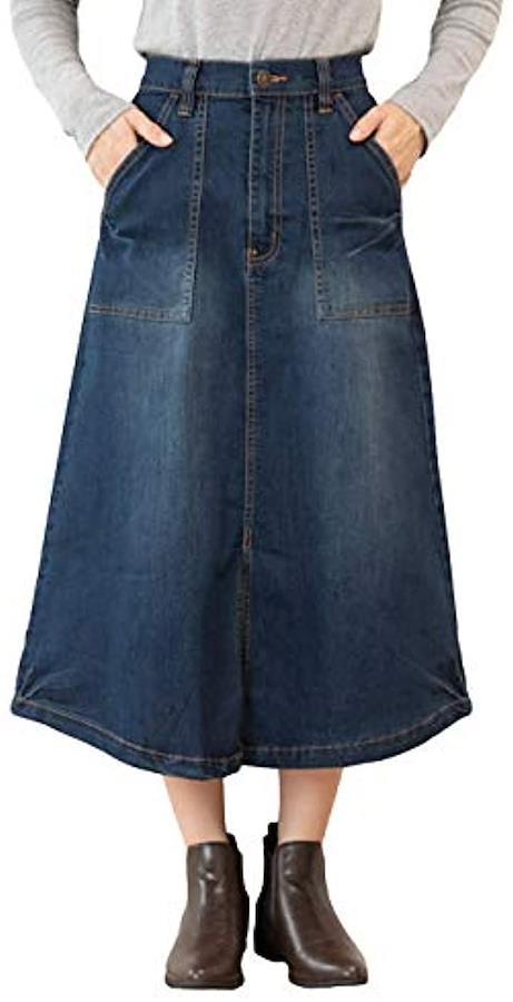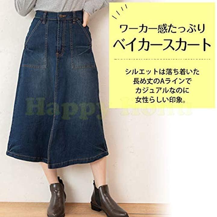 アウトポケットが特徴的なベイカースカートで大きなポケットが可愛くポイントに。