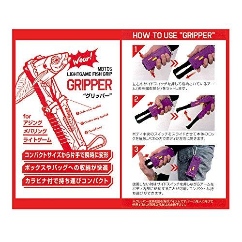 通常1-5営業日で発送:変形するフィッシュグリップ! 本体両サイドに付いたスイッチを押し込む事でアームが飛び出しセッティング完了。収納時も両サイドのスイッチを押しながらアームを押し込むと収納できます。カラビナ付きで持ち運びも便利。遊び心を加えたフィッシュグリップです。