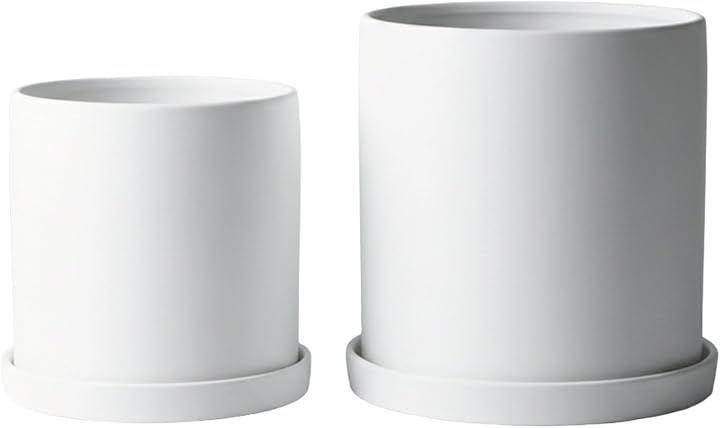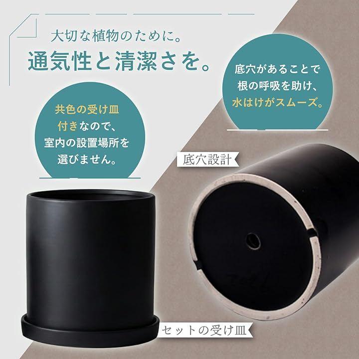 「素材」陶器 「表面仕上げ」マットカラー 「形状」円筒型 「構造」排水穴あり/受け皿付き 「サイズ」13x14cm、15x16cm 「カラー」マットホワイト、マットブラック、マットグレー 「使用場所」室内用(卓上・床置き対応) *製造工程の特性上、サイズに若干の個体差が生じる場合があります。