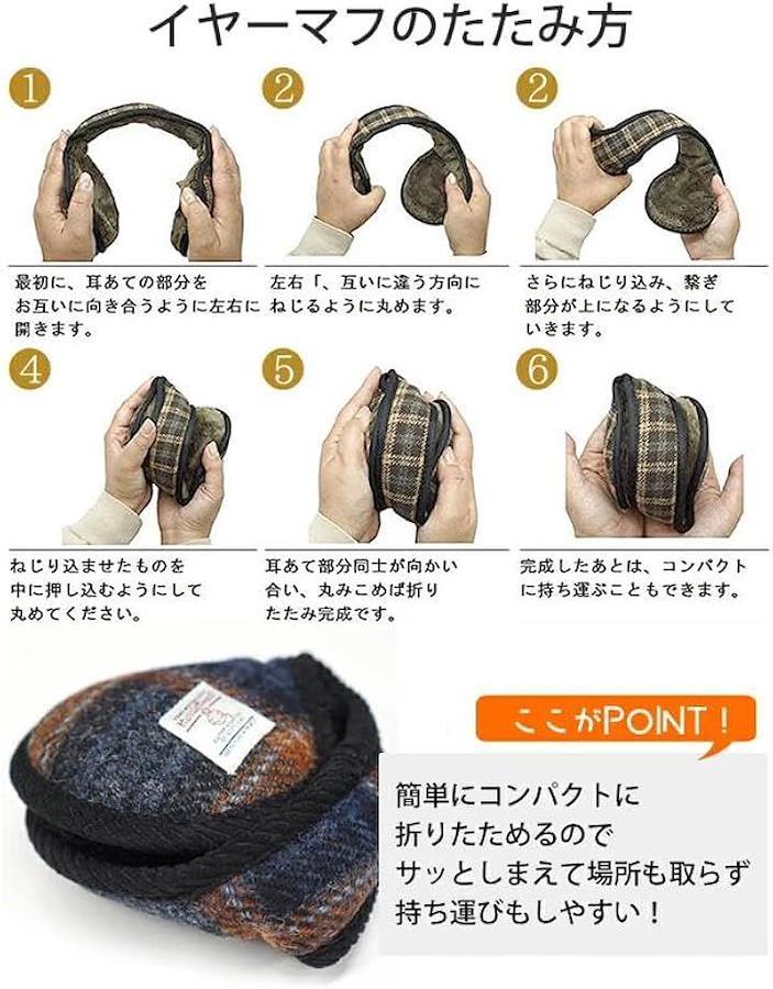 折りたたみ式なのでかばんの中に入れておいて、寒い時にさっと出して使えば耳が暖かく便利なアイテムです。