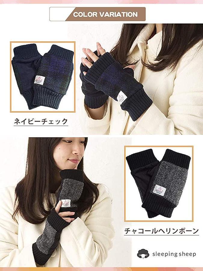 甲側はお洒落なハリスツイード生地指先フリー&裏ボア仕様でふわふわ、あったか手袋ケース入りなのでプレゼントにもお勧め