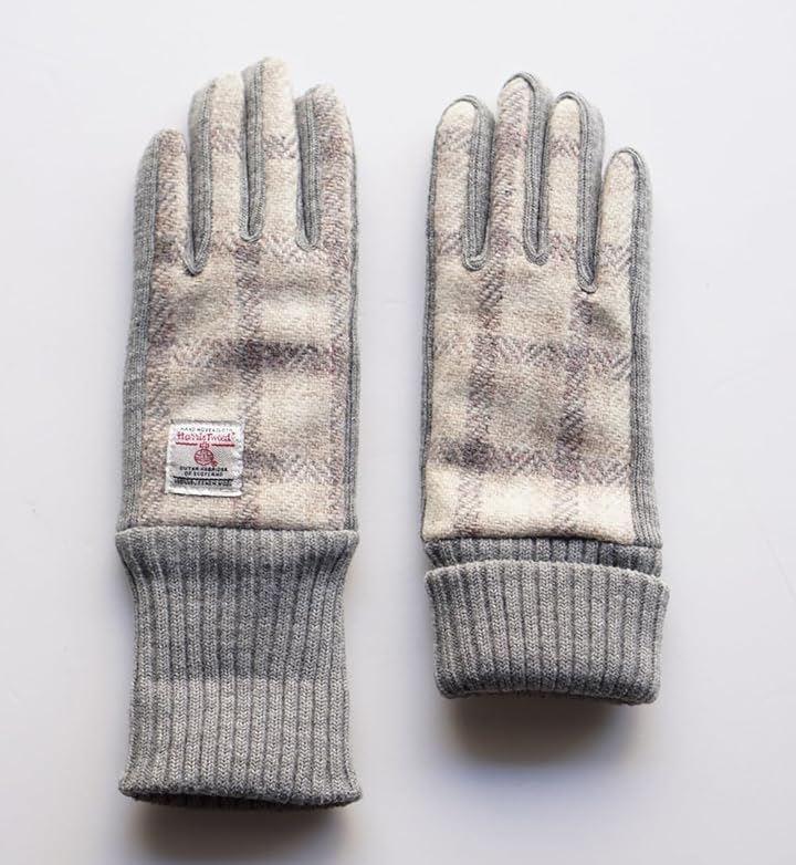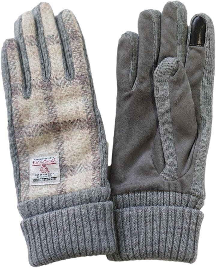 Harris Tweed Gusseted Women's Smartphone Compatible Gloves with Fleece Lining Case LD-MT-WH-GRY