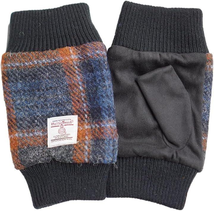 Harris Tweed Men's Mitaine Harris Tweed Gloves, Cute, Fleece-Lined, Christmas Gift, Oversized, Loose-Fitting, Checked, Wool, Arm Covers, Gloves with Case
