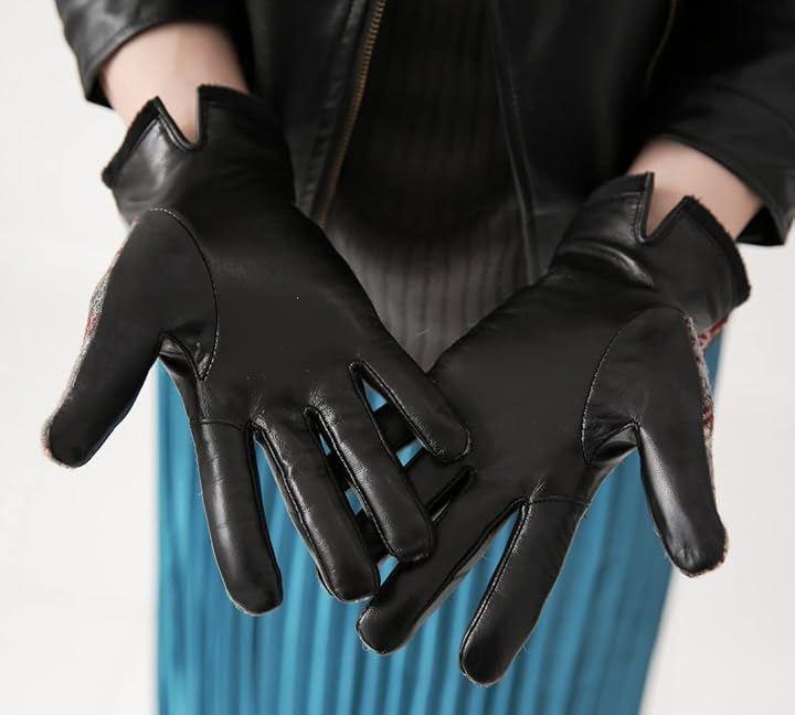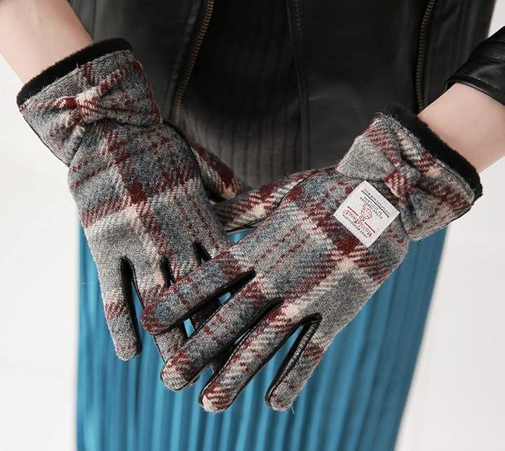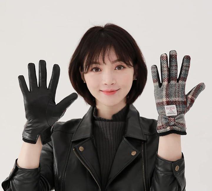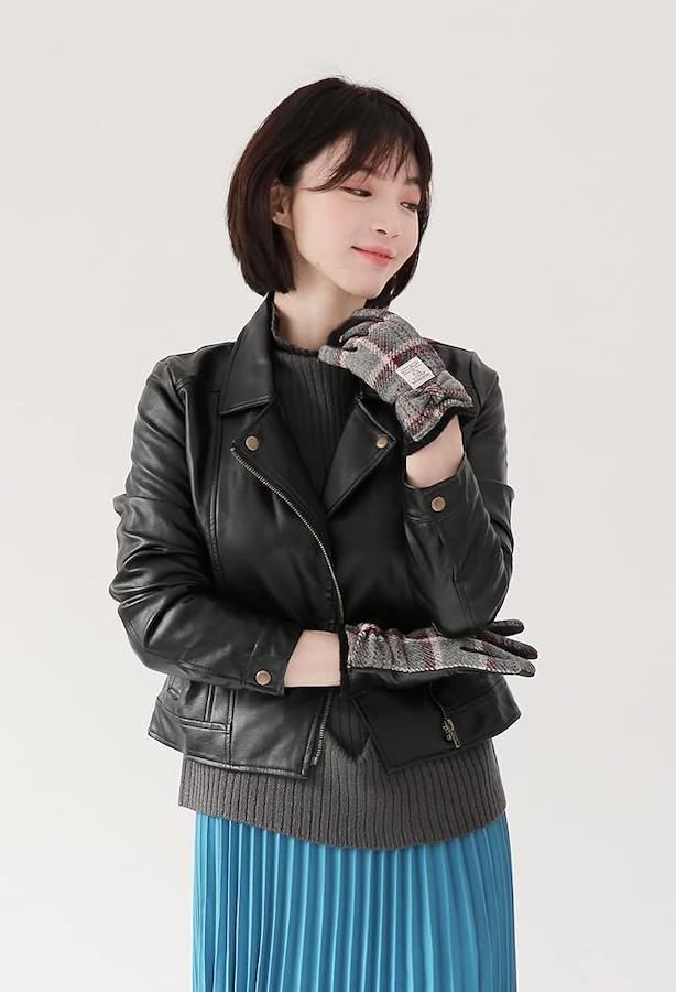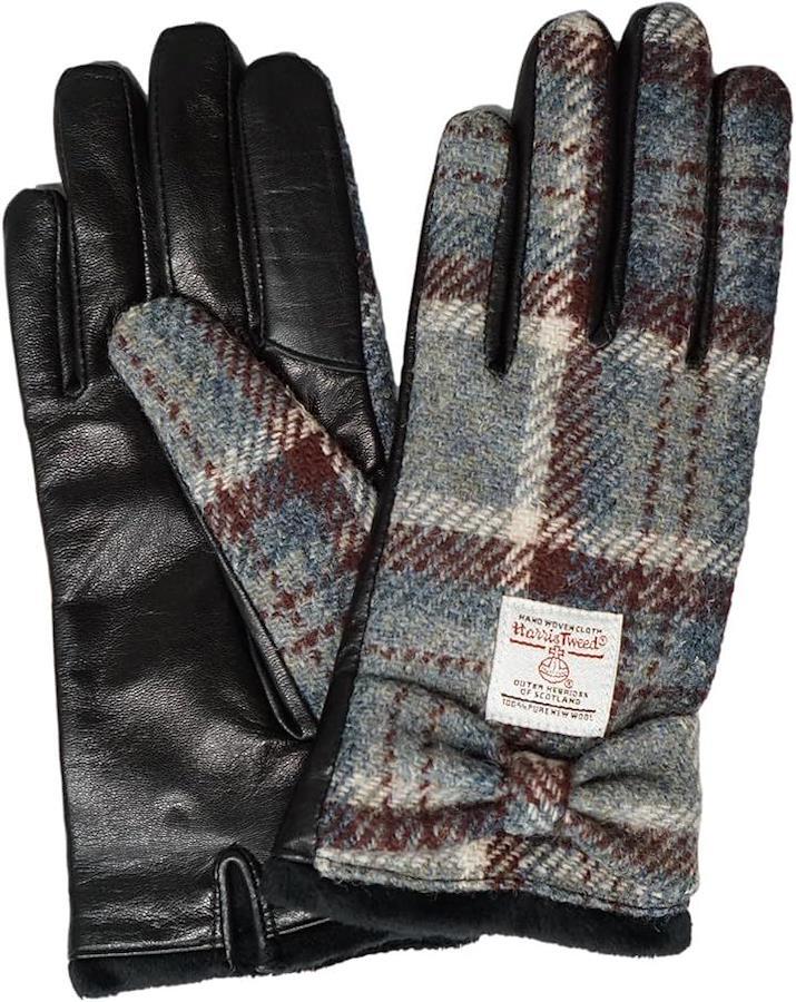こちらの手袋は、手のひら側は羊の革、そして手の甲部分はツイード生地が使われているデザイン。