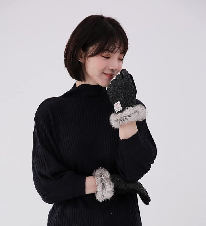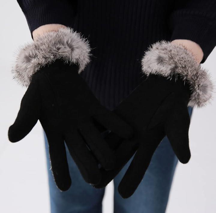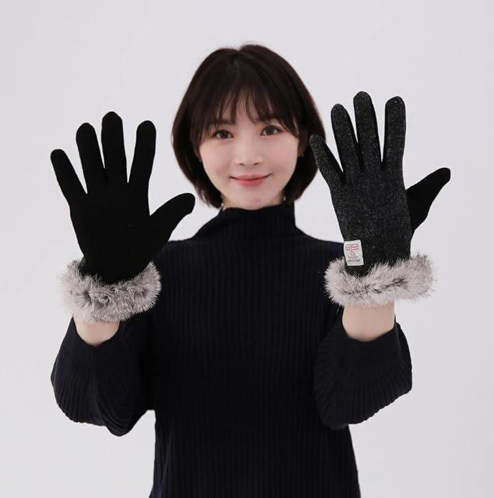裾部分のふわふわラビットファーが手首を優しく温めてくれるお洒落な手袋です。