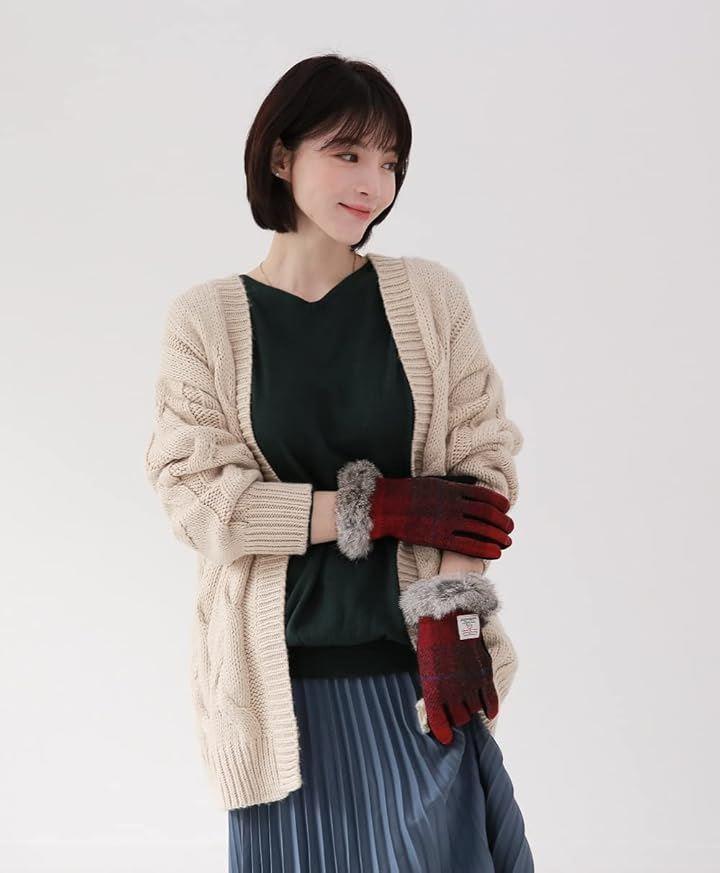 手のひら側は柔らかいニット素材、そして手の甲部分はツイード生地が使われております。