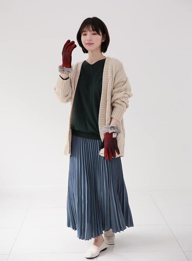 裾部分のふわふわラビットファーが手首を優しく温めてくれるお洒落な手袋です。