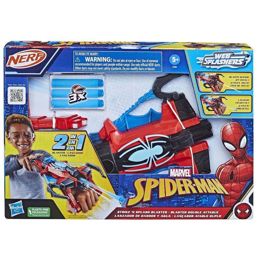 "マーベルのスパイダーマンとシューティングトイのナーフのコラボレーション!ナーフ ウェブ・スプラッシャーズ スパイダーマン ストライク&スプラッシュ・ブラスターは、ボタンを押すだけで、ブラスターから水とダーツを発射!子どもたちはスーパーヒーローになりきってエキサイティングな冒険を楽しむことができます!マーベルやナーフのファンの方へのプレゼントにも最適です!対象年齢5才以上 Copyright 2023 Marvel.Hasbro and all related terms are trademarks of Hasbro."