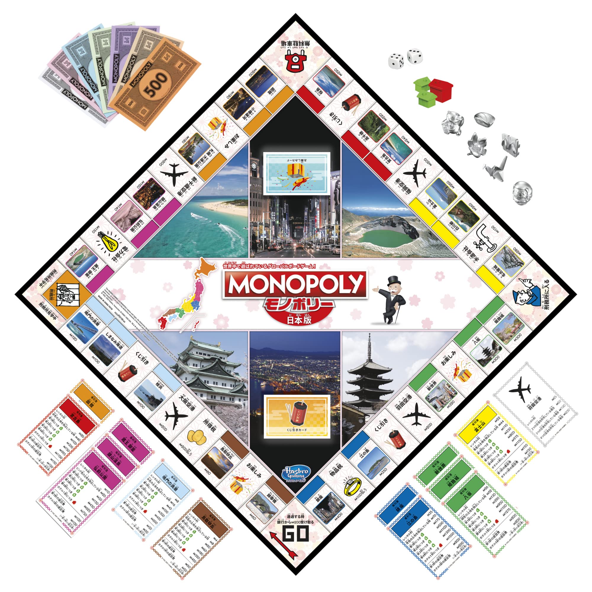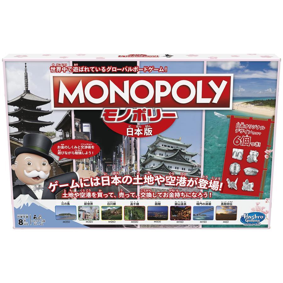 世界中で大人気のボードゲーム、モノポリーの日本版が新登場! 投票キャンペーンで選ばれた日本全国の土地22か所をゲームに採用、ゲームボードもコマも日本オリジナルのデザインになりました! ゲームの流れを変える2種類のカードの内容も、カラオケ大会で優勝したり、福引きに当たったりと日本版に変更! ルールはいつものモノポリーと一緒。日本全国の土地や空港を売って、買って、交換してお金持ちを目指しましょう。土地や空港を所有すればするほど、より多くのレンタル料をゲット! 他のプレイヤーと交渉して、土地や空港を交換することもできます。他のプレイヤーが破産して、最後の1人になったプレイヤーが勝ちです。家族や友達と楽しく遊びながら、お金のしくみや交渉の仕方を学びましょう! このボードゲームは子供向けで、日本語版です。知育ゲームやパーティーゲーム としてもオススメ。8才のゲームにいかがでしょうか。・セット内容:ゲームボード、コマ…6個、権利書…28枚、くじ引きカード…16枚、お楽しみカード…16枚、家…32軒、ホテル…12軒、サイコロ… 2個、お金…1セット、ゲームガイド、ロケーションマップ 【ゲームボードには全国の土地が登場】モノポリーで日本一周! 投票キャンペーンで選ばれた22か所がモノポリーの土地になりました。全国の土地や空港を買って、売って、目指せ1番のお金持ち! 【土地を買ってみよう! 】 土地に止まったら、お金を銀行に払って土地を買いましょう。他のプレイヤーが自分の持っている土地に止まったらレンタル料がもらえます! 【家やホテルを建てよう! 】同じ色の土地を全てそろえると、家を建てることができます。家が2軒から3軒になると、レンタル料は大きく変わります! 【交渉でさらにゲームを面白く! 】モノポリーは、交渉してゲームを進めることができます! 自分の欲しい土地や空港などを誰かが持っていたら、交渉してゲットしましょう。自分の持っている現金や他の土地や空港、「刑務所から釈放」カードなどと交換することができます。金額はプレイヤー同士で決めましょう! 【勝負を左右する2つのカード】くじ引きカードでは、いろいろな土地や空港に行ったり、道に迷ってしまったり…ラッキー&アンラッキーなことが起こるかも…! ? お楽しみカードでは、カラオケやゲームの大会で優勝してお金をもらえるかも…! ? 【人気ボードゲーム 子供向け】ボードゲームは日本語版なため、遊び慣れていない人でも分かりやすいです。8才ゲームとしてもオススメ! 知育ゲームやパーティゲームなど、好きな方法でモノポリーを遊んでください!