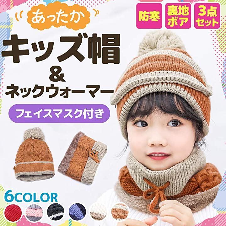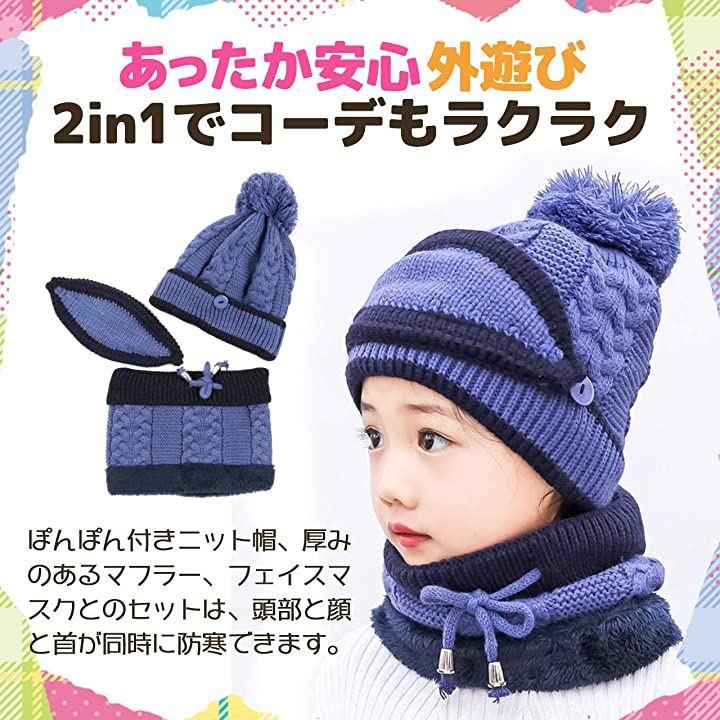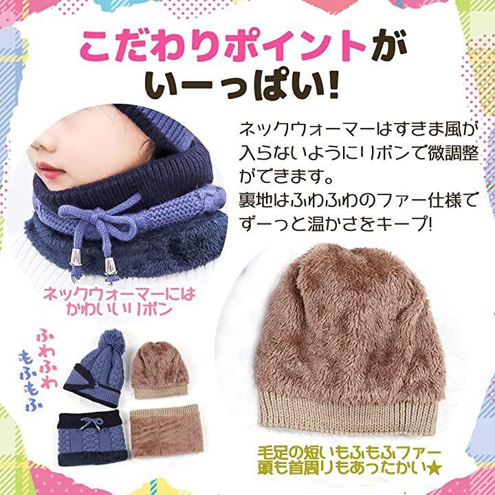 ・子供用のニット帽子、ネックウォーマーのセット。