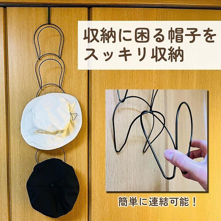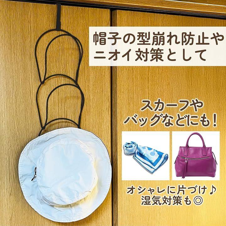 「帽子の型崩れ防止やニオイ対策として」この吊り下げハンガーは、帽子や鞄などを手軽に掛けられ、帽子収納やカバン掛け、リュックハンガーになります。