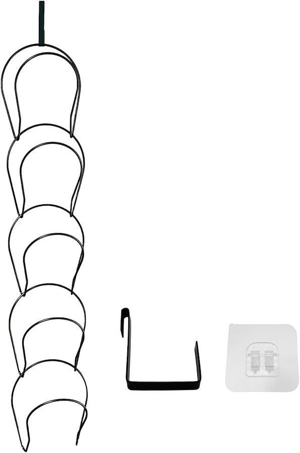 「バリエーション」5個セット:帽子掛けハンガー本体5個、吊り下げドアフック1個、粘着シール1個。
