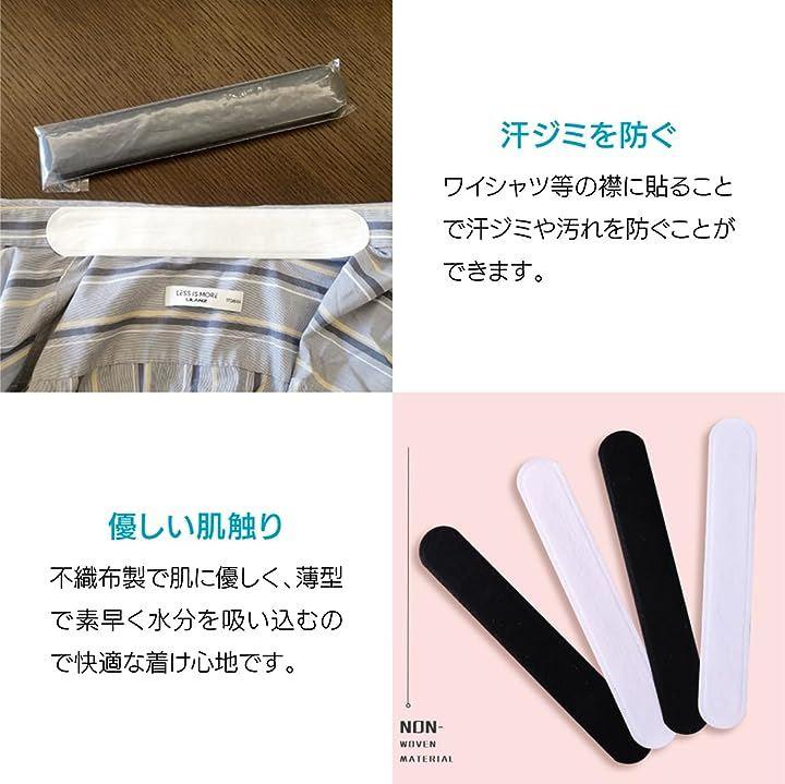 また、ワイシャツ等の襟に貼ることで汗ジミや汚れを防ぐことができます。