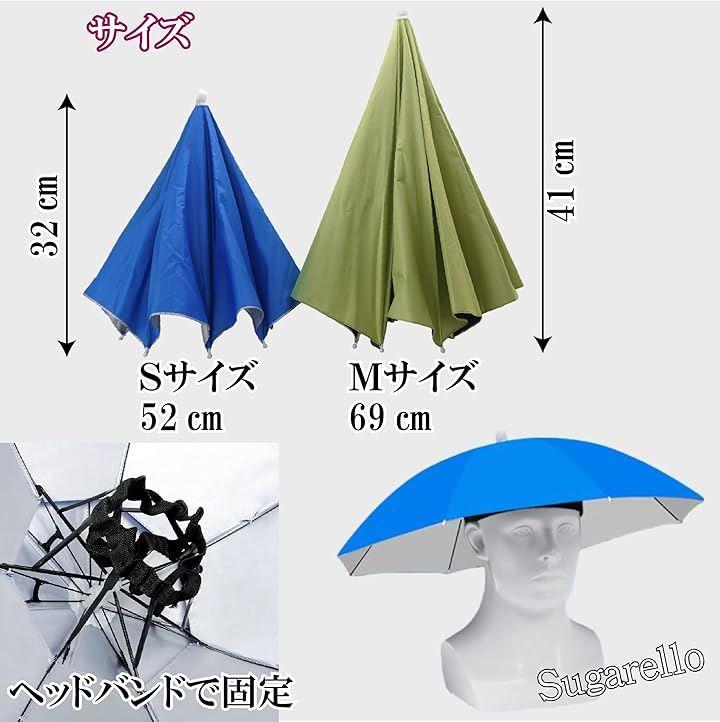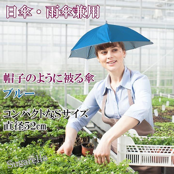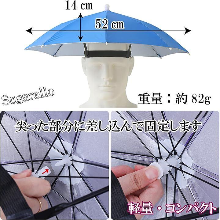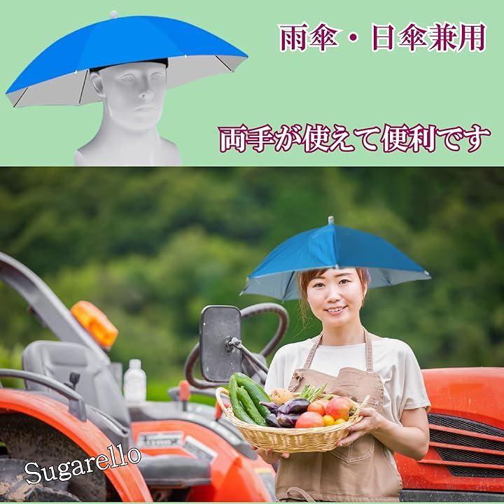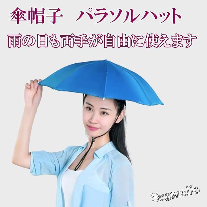 ハンズフリーで傘を使える、頭にかぶるタイプのパラソルハットです。