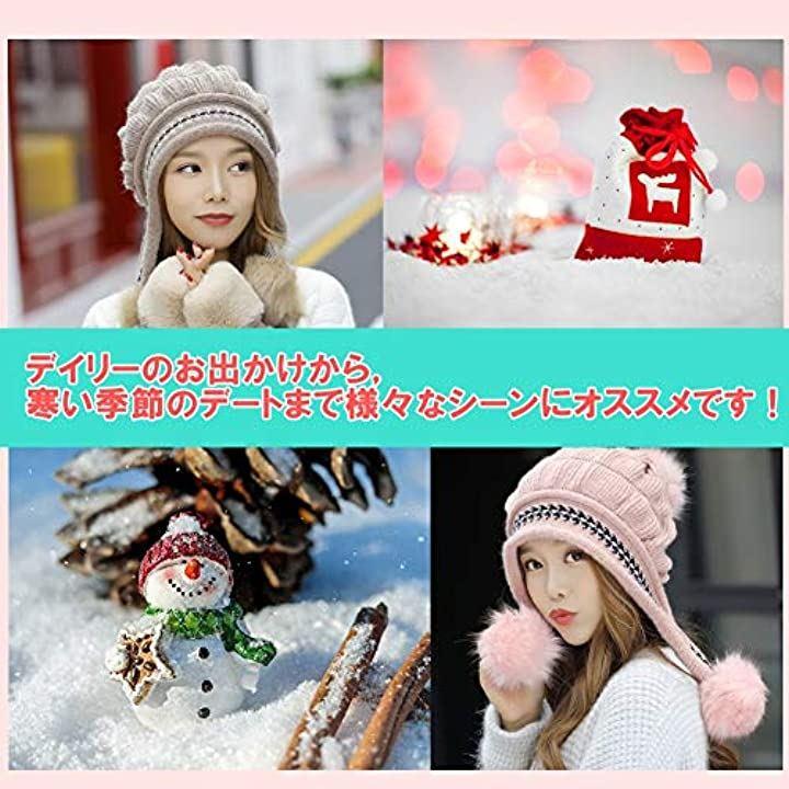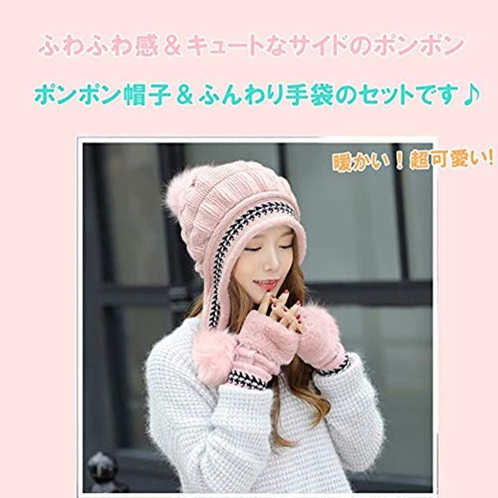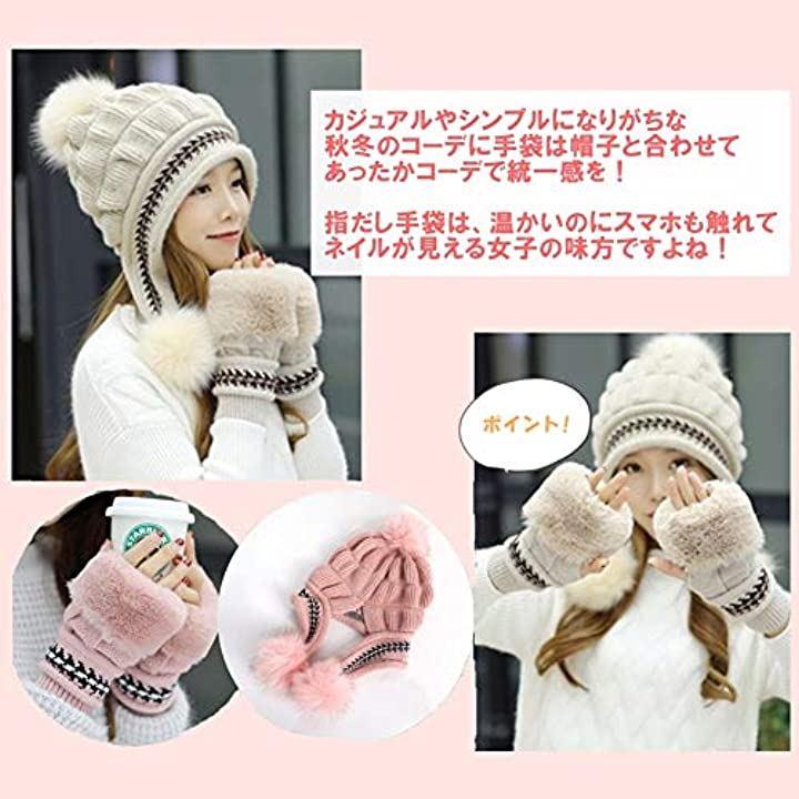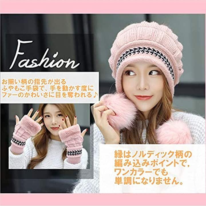 FUPUONE帽子レディース冬ニット帽手袋防寒帽子と手袋のセット4カラー