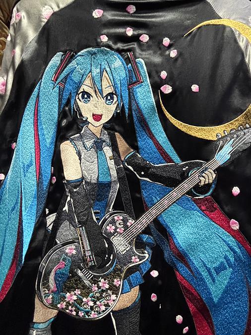 【初音ミク】桜満開リバーシブルスカジャン世界的人気バーチャルシンガー【初音ミク】と絡繰魂が初コラボ!!!クリエイター「iXima」氏による完全描き下ろしイラストを大判のALL 刺繍で大迫力のスカジャンに!!演奏しているのは、今回のコラボ限定デザインのギター!!ブランドロゴも限定デザイン、限定カラーリング。リバーシブル裏面は胸部にロゴ、背面はスカジャンらしく「Japan」の文字を刺繍。ネットカルチャーから飛び出した最高の一着をぜひ!!※この商品はリバーシブルです◾️素材レーヨン100%◾️実寸(cm)Lサイズ:身幅57 裄丈88 着丈67