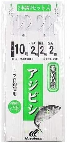 【ハヤブサ/HAYABUSA】船宿特製、ムツ白鈎・高感度フロロカーボン使用アジビシ仕掛。船・天秤式2本鈎2セット。