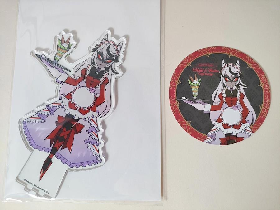 Hazbin Hotel Carmilla Carmine Cafe Lounge Set – Acrylic Stand & Coaster – Japan Animate Cafe Exclusive✨ Item DescriptionThis is a Japan-exclusive Animate Cafe collaboration item from the popular series Hazbin Hotel.It features Carmilla Carmine dressed in an elegant maid-style outfit from the Maid & Butler Cafe Lounge event held in Japan.