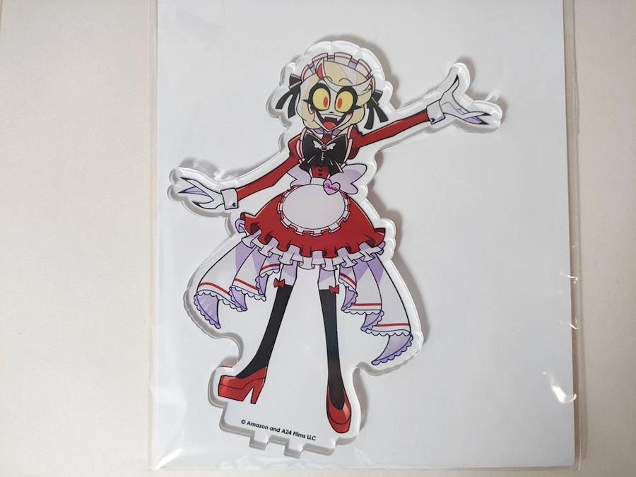 Hazbin Hotel Charlie Maid Ver. Full Set – Acrylic Stand, Can Badge, Foil Card & Coaster – Japan Animate Cafe Exclusive✨ Item DescriptionThis is a Japan-exclusive Animate Cafe collaboration item from the popular series Hazbin Hotel.It features Charlie wearing a charming Maid-style outfit, inspired by a cafe theme.